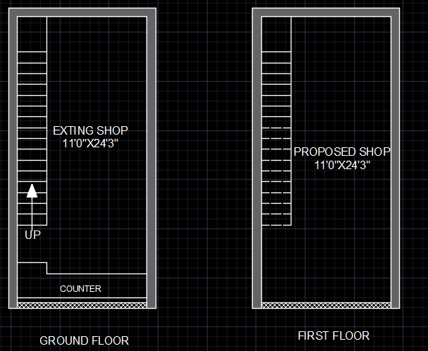 The plan is of a shop of size 12'6"x 25'6" in which two floors are provided. on first floor main counter is placed and second floor is for storage and future expansion. This is south facing plan.
