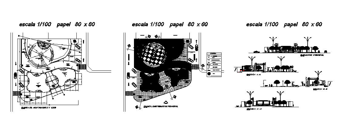 Las flores park elevation, section and landscaping structure details that includes a detailed view of eleation details, section details, main entry gate, roads, landmarks, tree view, green area, landscaping view, garden decorative equipment, sports equipment details, gazebo, kiosk, food court, wooden benches and furniture, fountains, decorative tree equipment, site dimensions, topography, existing utilities, soil conditions, drainage solution, accessible route of travel and much more of garden details.