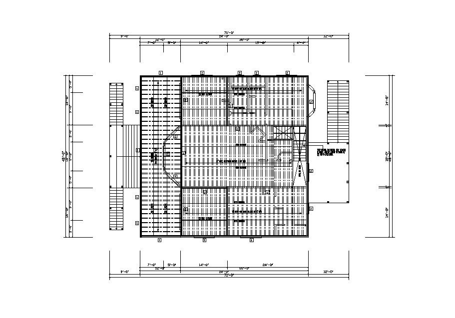 Ground floor framing plan of house cad drawing details that includes a detailed view of wood posts, joints, decking, grider pre-engineering, steel pipe column, play joints, existing floor joints, knee wall, steel pipe column, beam schedule details, dimensions details, measures and much more of framing plan details.