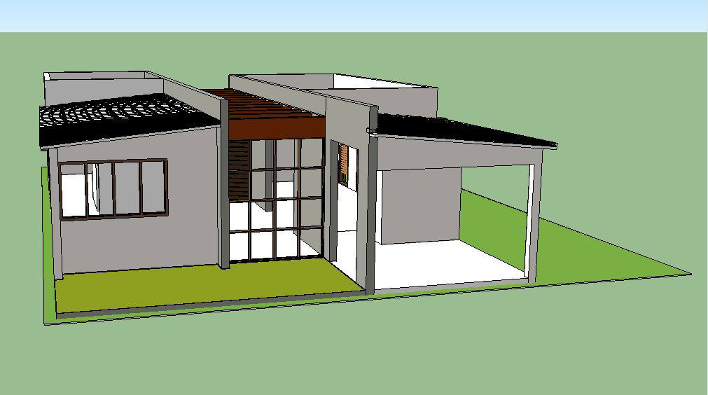 Single story modern house 3d model that includes a detailed view of flooring view, doors and windows view, staircase view, balcony view, wall design, dimensions, roof or terrace view and much more of house details.