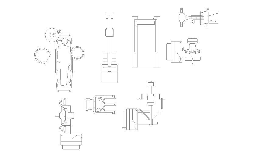 Multiple gym equipment and furniture blocks details dwg file