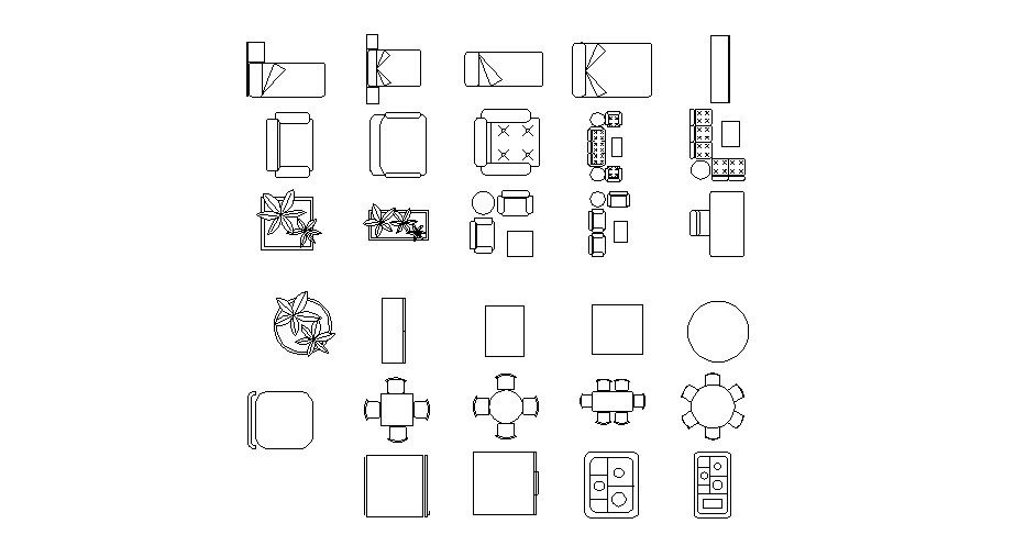 Dynamic household and multiple furniture blocks cad drawing details dwg file