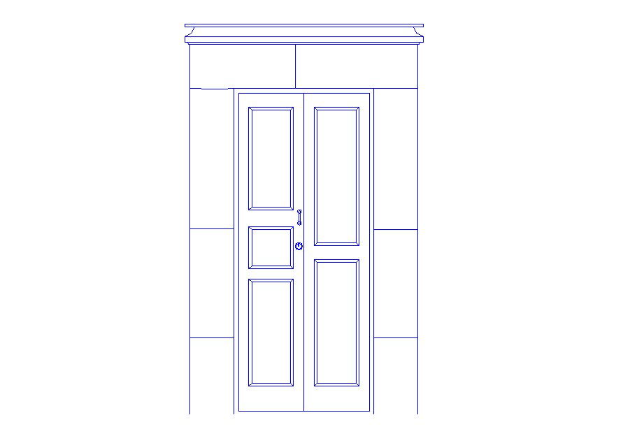 Double door elevation block auto-cad details that includes a detailed view of double door block with handle details, frame details, colors details, size details, type details etc for multi purpose uses for cad projects.