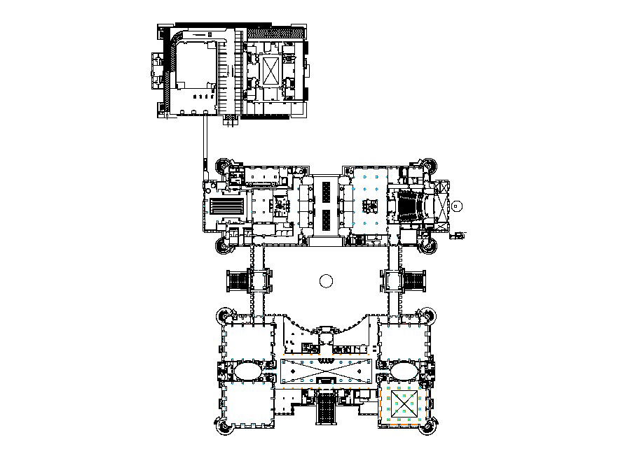 Ground floor with furniture layout plan details of ministry of head quarters dwg file