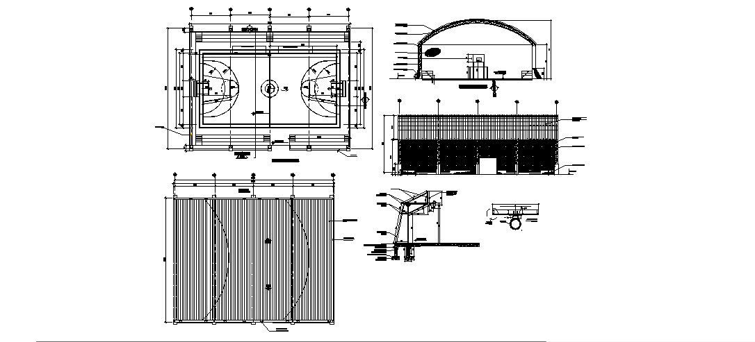 Sports court section, cover plan and sports ground details dwg file