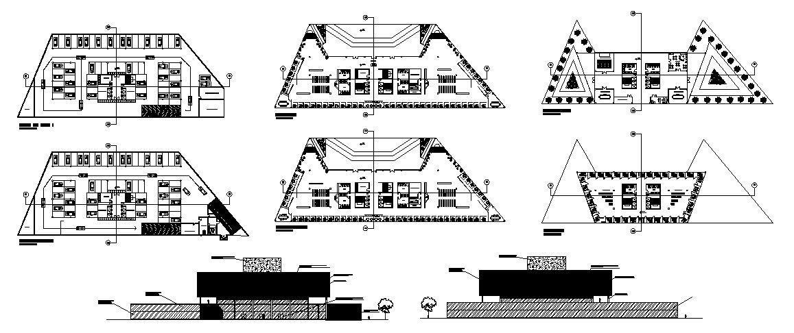 Corporate office building elevation and floor plan cad drawing details dwg file