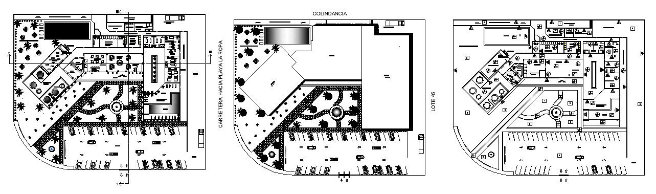 Spa center building floors floor plan cad drawing details that includes a detailed view of parking area details, garden view, Jacuzzi details, kitchen, cafeteria, dimension details, massage center, furniture layout details and much more of spa center details.