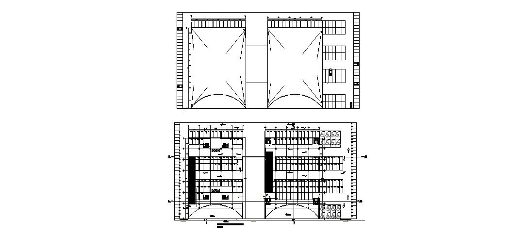 Framing plan and general plan details of architecture college building that includes a detailed view of indoor passage, doors and windows details, indoor staircase details, dimensions details, area details, sanitary details and much more of college details.