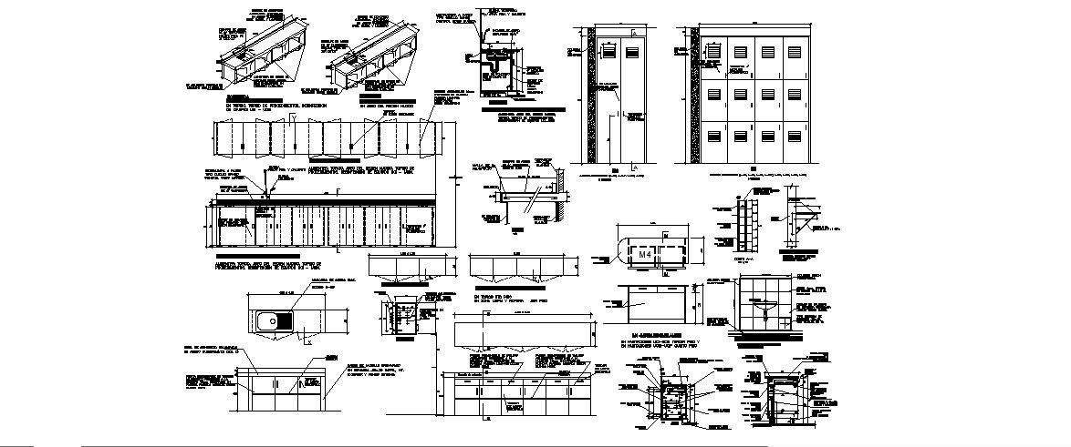 Wardrobe, cabinet and multiple furniture elevation, section, plan and car pantry details that includes a detailed view of cupboard elevation and section details, plan details, wardrobe details, wooden details, car pantry details, dimensions details and much more of furniture details.