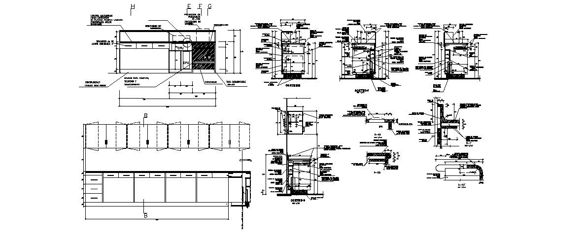 Cupboard elevation, section, plan and carpentry cad drawing details dwg file
