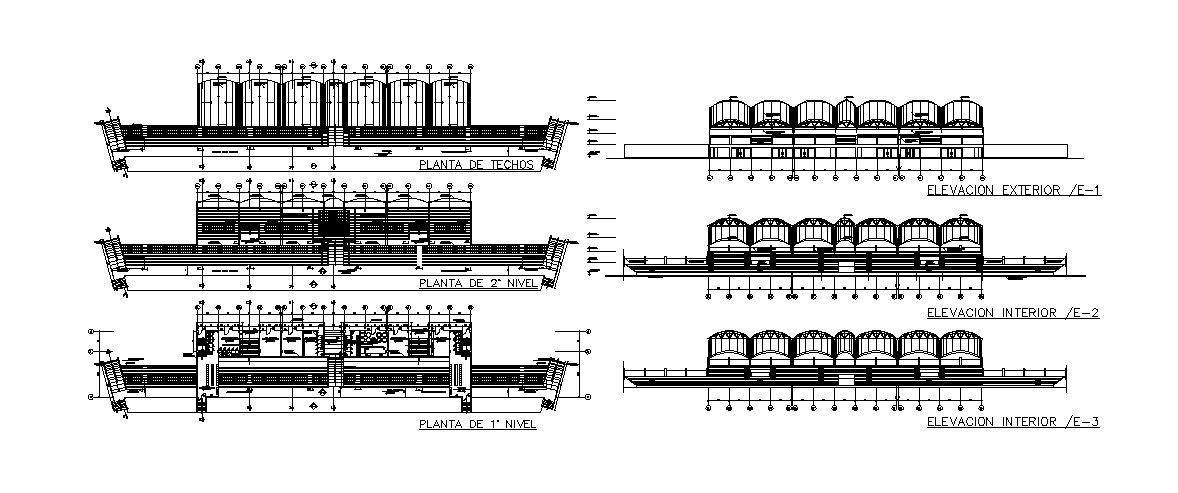 Oroya sports stadium building elevation, section, plan and auto-cad details dwg file