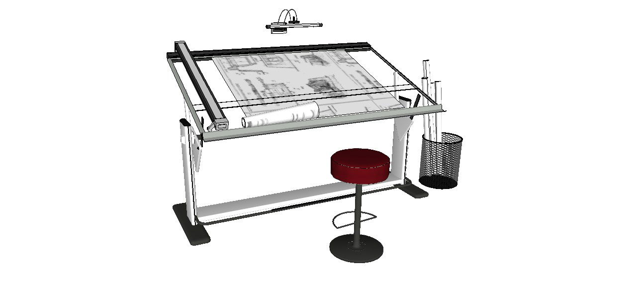 Drafting machine and table 3d model cad drawing details that includes a detailed view of drafting machine with table details, colors details, size details, type details etc for multi purpose uses for cad projects.