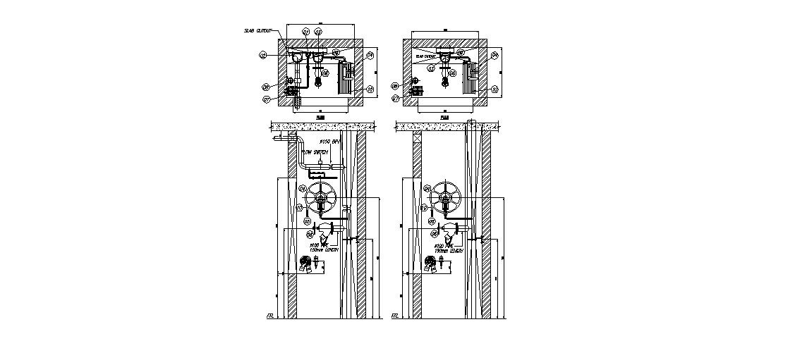 Internal FHC details with sprinkle and drain pipe cad machinery details dwg file