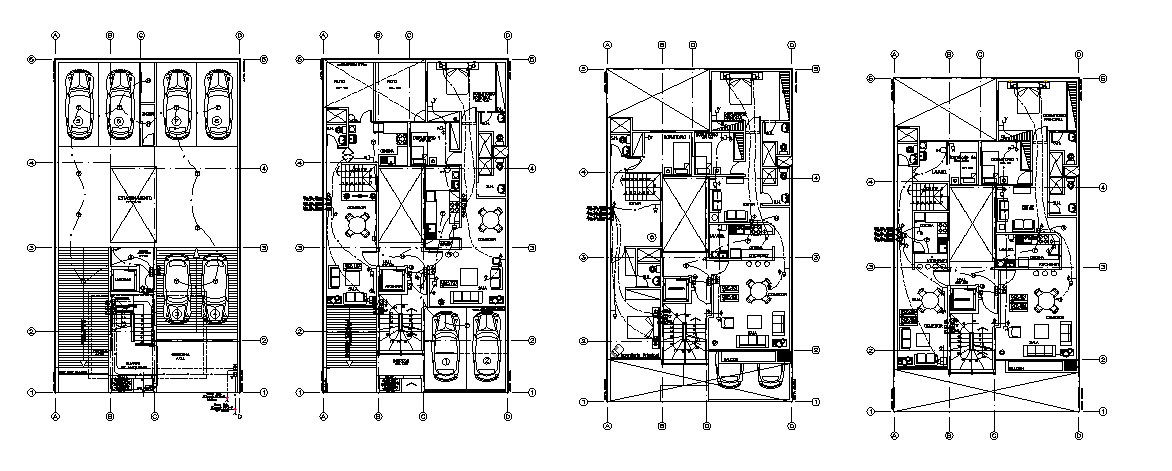 Multi-story apartment building floor plan and electrical layout plan cad drawing details dwg file