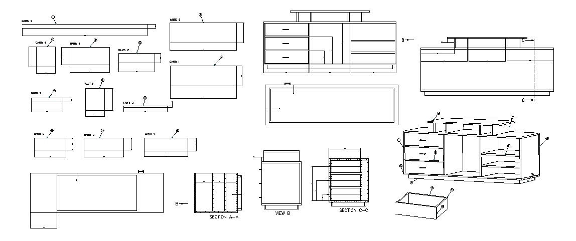 Wooden TV Cabinet Plan and Elevation in AutoCAD File