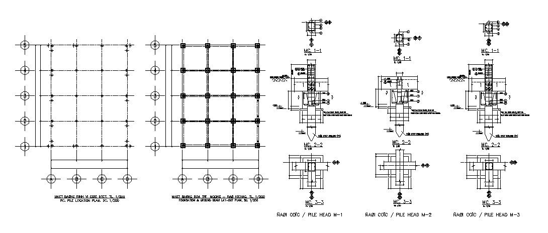 Foundation plan with column structure details of dump house dwg file