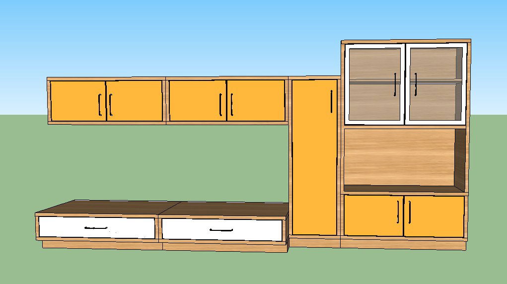 3d model of showcase details furniture unit sketch-up file which includes details like a wooden material, hatching, etc with prospective view.