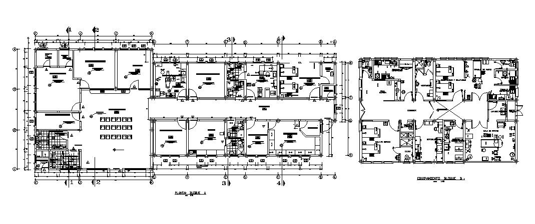 Floor plan of clinic with architectural view in autocad which provide full details of medical store, waiting room, reception rea, doctor's office, laboratory, gynecology office, etc and it also gives full detail of furniture.