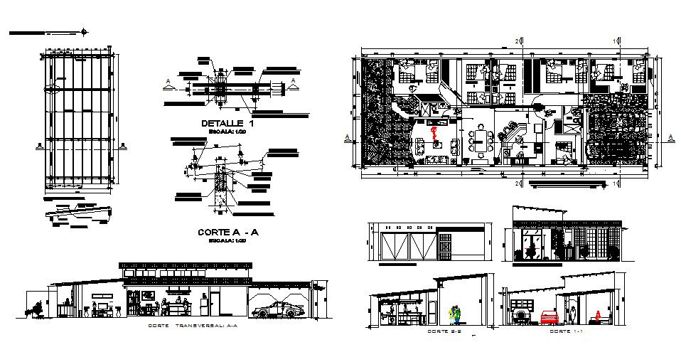 Guest House Floor Plans In AutoCAD File which provide full details of furniture, detail of rooms, dining hall, kitchen, hall, terrace, it also provide detail of parking area and garden