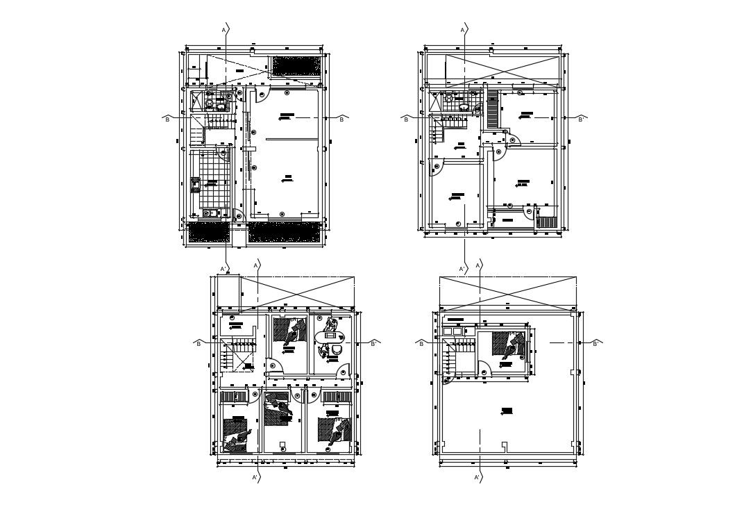Apartment Drawing Design In AutoCAD File which includes detail dimensions of hall, bedroom, kitchen, dining room, bathroom, toilet, it also provide detail of furniture, detail of staircase.