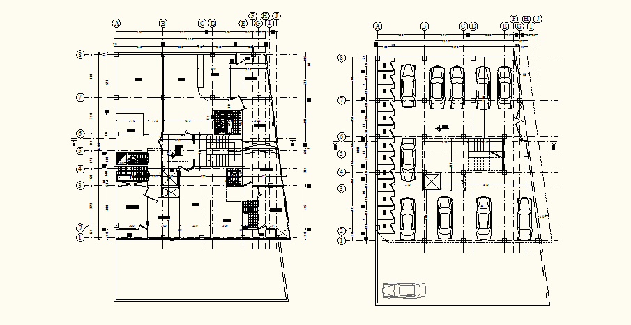 Residential Building In DWG File which includes detail of ground floor plan, site plan, etc it also provides detail of drawing room, bedroom, kitchen, dining area, bathroom, detail of parking space,