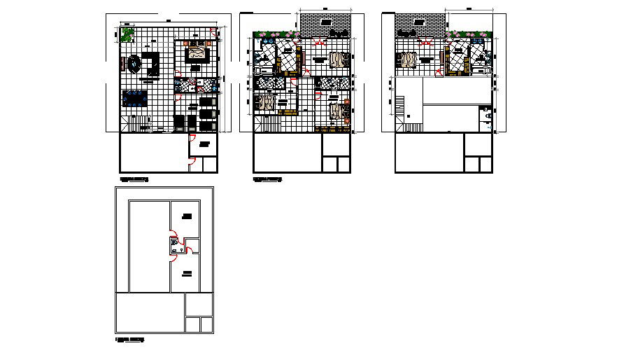 Floor plan of the residential house with furniture detail in dwg file