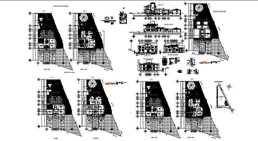 Design of Villa 11.50mtr x 40.35mtr with different section and elevation in dwg file