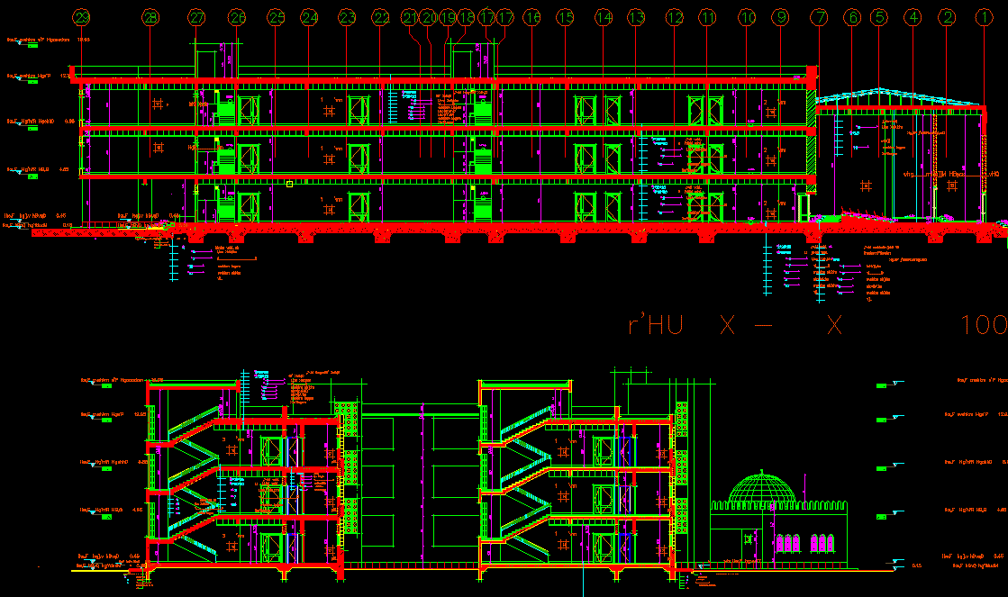 School elevation DWG design includes modern elevation and section layout plans ideal for architects, civil engineers, and educational building designers.