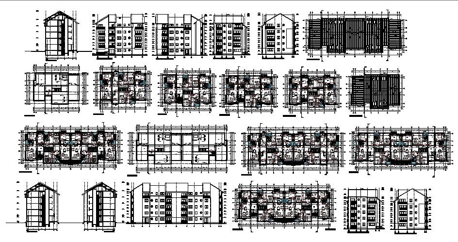 Architectural plan of Residential apartment 21.15mtr x 14.55mtr with section and elevation