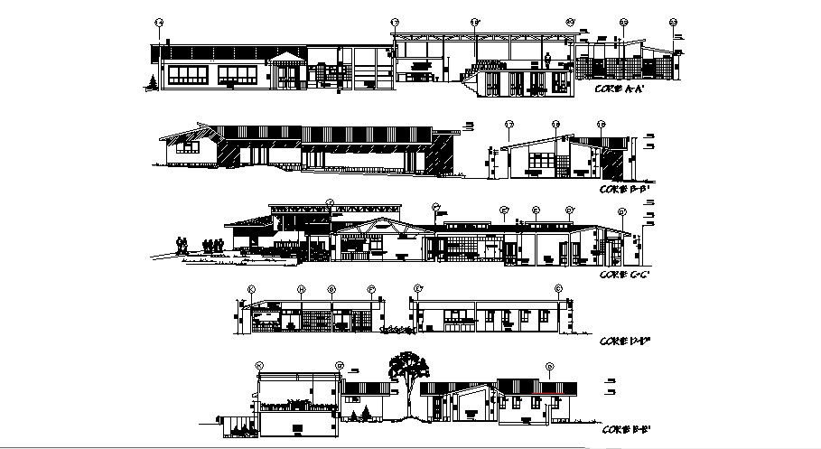 Plan of the hotel with different section and elevation in dwg file