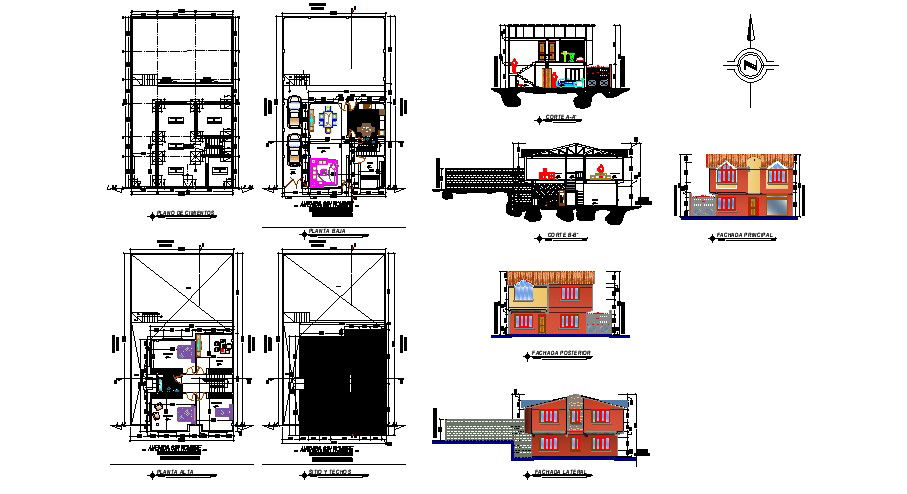 Architectural plan of residential house 12.00mtr x 20.00mtr with elevation and section in dwg file