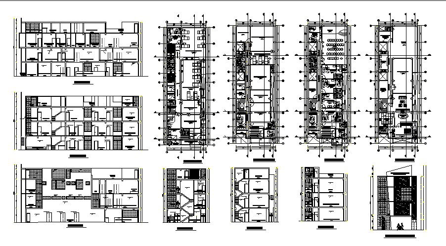 plan of clinic 10.00mtr x 30.00mtr with detail dimension in dwg file which provides detail of front elevation, side elevation, different section, detail dimension of the reception area, passage, consultant room, rooms, WC and bath etc it also gives detail of location plan.
