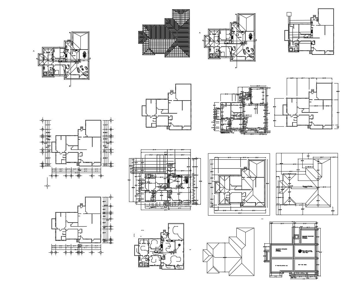 Architectural plan of bungalow 80'00'' x 74'00'' with details dimension in dwg file which provides detail of roof plan, detail of hall, bedroom, kitchen with dining area, bathroom, toilet, etc it also gives full detail of furniture.