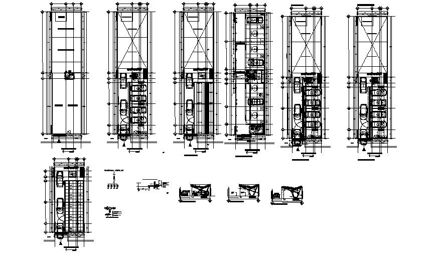 Parking layout design with elevation in dwg file it includes the parking area, side elevation, front elevation, partition wall, circulation area of cars etc