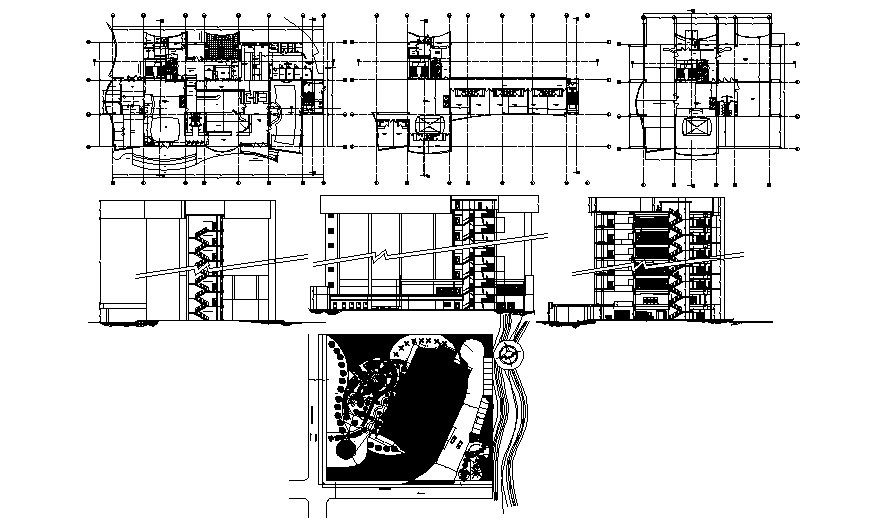 Architectural plan of multistorey hotel building 58.90mtr x 29.25mtr with detail dimension in dwg file
