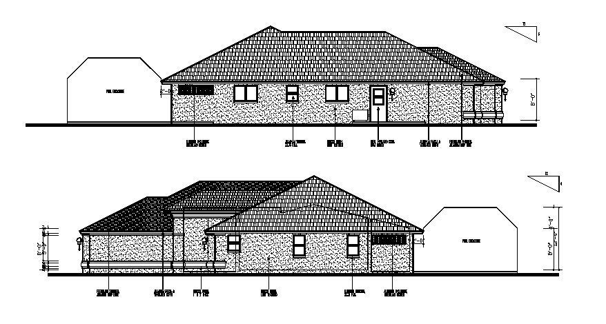 Elevation drawing of the bungalow in dwg file it includes right elevation, left elevation, etc it also gives details of the door, windows, and roof details.