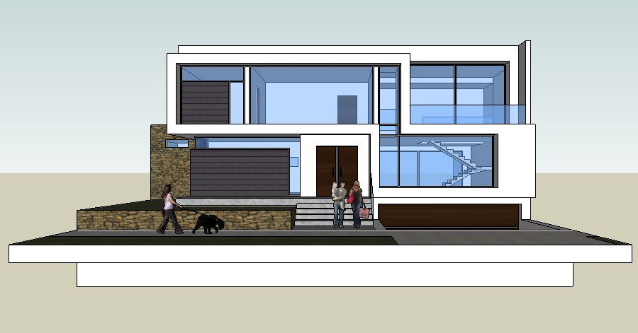 Sketchup file of the house design with exterior detail it includes detail of exterior of the house with glass, contain staircase, partition, door, and windows.