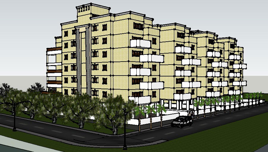 Drawing of Apartment 3D elevations in SketchUp file it includes landscaping, balcony, main entrance, door, window, exterior view of the building