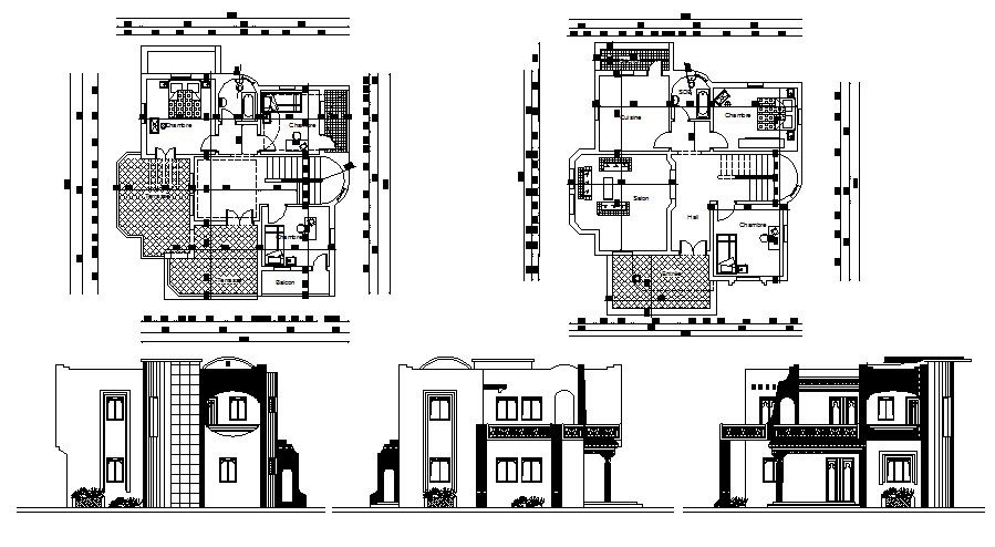 Plan of Villa 10.50mtr x 11.10mtr with elevation in AutoCAD