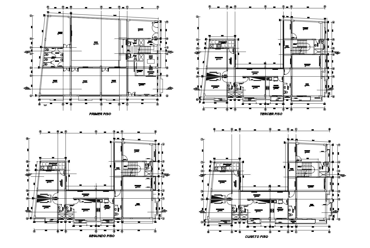 Residential apartment with detail dimension in dwg file which provides detail of hall, bedroom, kitchen with dining room, bathroom, toilet, etc.