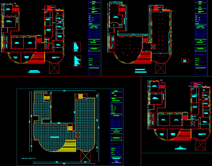 Upasana School DWG CAD design includes first to terrace floor plans with detailed layouts ideal for architects, planners, and educational building design.