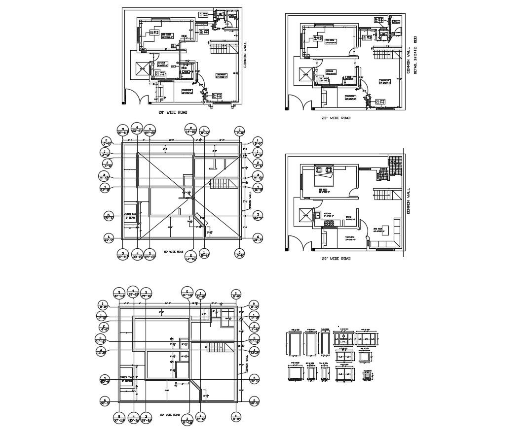 Residential drawing of bungalow in dwg file it include masonry layout, ground floor layout,plinth beam detail,working layout, construction detail, it also include master bedroom, kitchen, dinning area, drawing room, etc