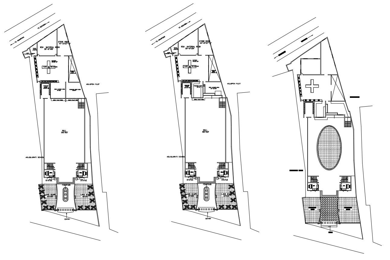 Autocad drawing of hotel it includes landscaping, seating, office, kitchen, storage, toilets, hall, etc