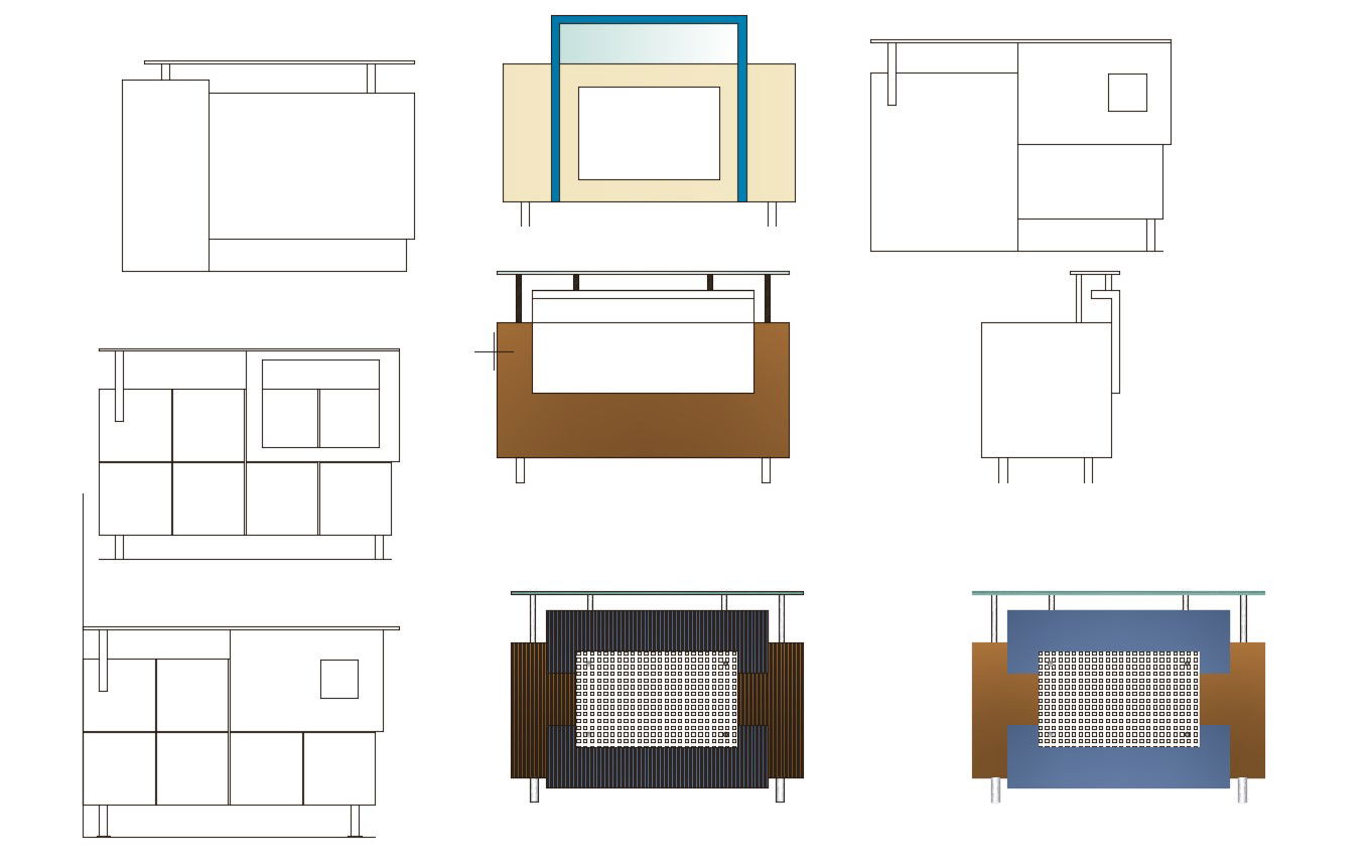 Furniture detail of reception area in dwg file it include plan,section,elevation, etc