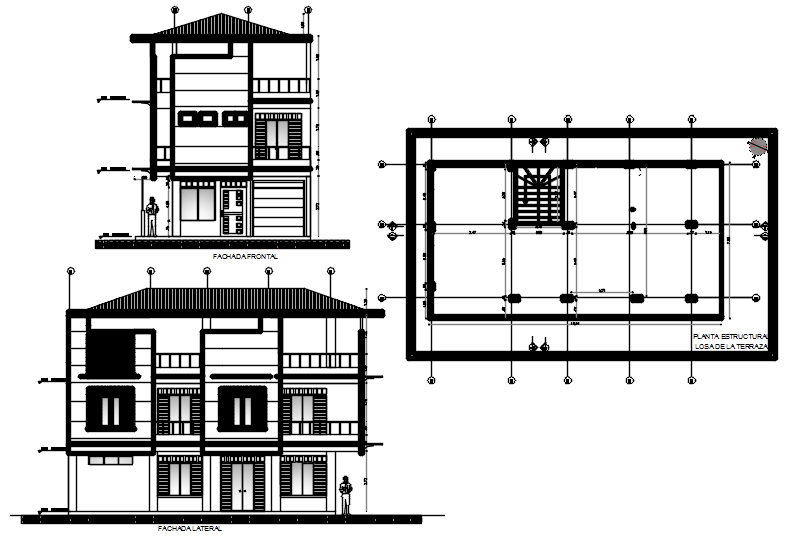 Elevation drawing of the bungalow in AutoCAD which provide detail of front elevation, back elevation, detail of floor level, etc.