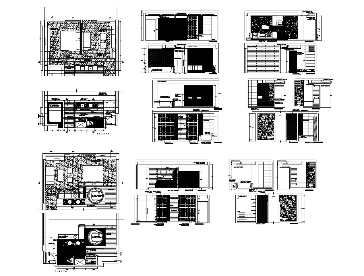 Autocad drawing of hotel suite elevations it include elevations, section, front facade, etc