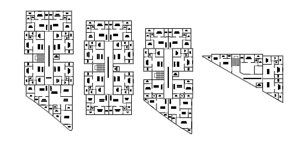 Plan of residential flats with detail dimension in dwg file