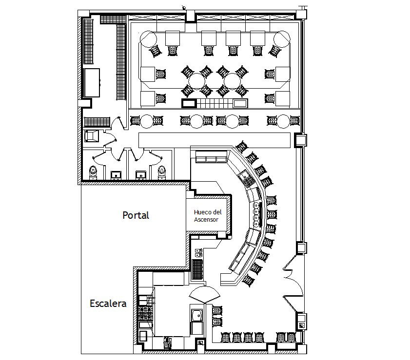Autocad drawing of bar restaurant it include floor plan it also include kitchen,seating area,waiting area, reception,dance floor, etc
