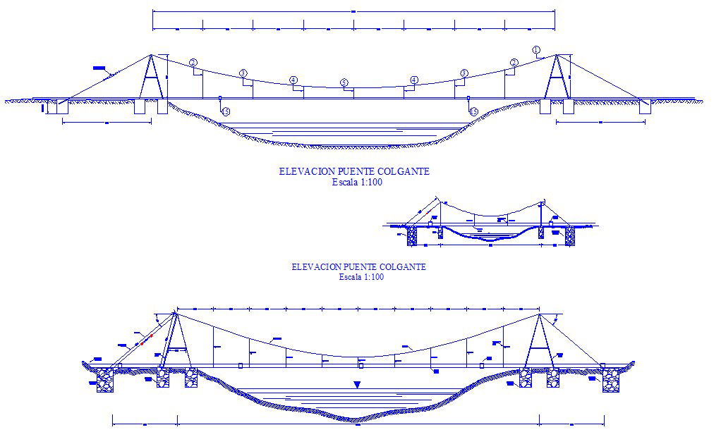 Autocad drawing of suspension bridge plan it include detail drawing of suspension bridge etc