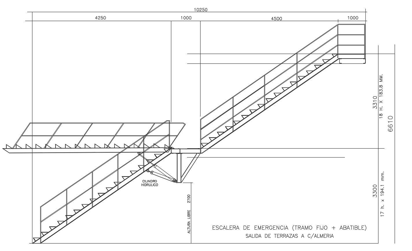 Emergency exit stair in dwg file it include elevation of stair with dimensions,hydraulic cylinder,etc